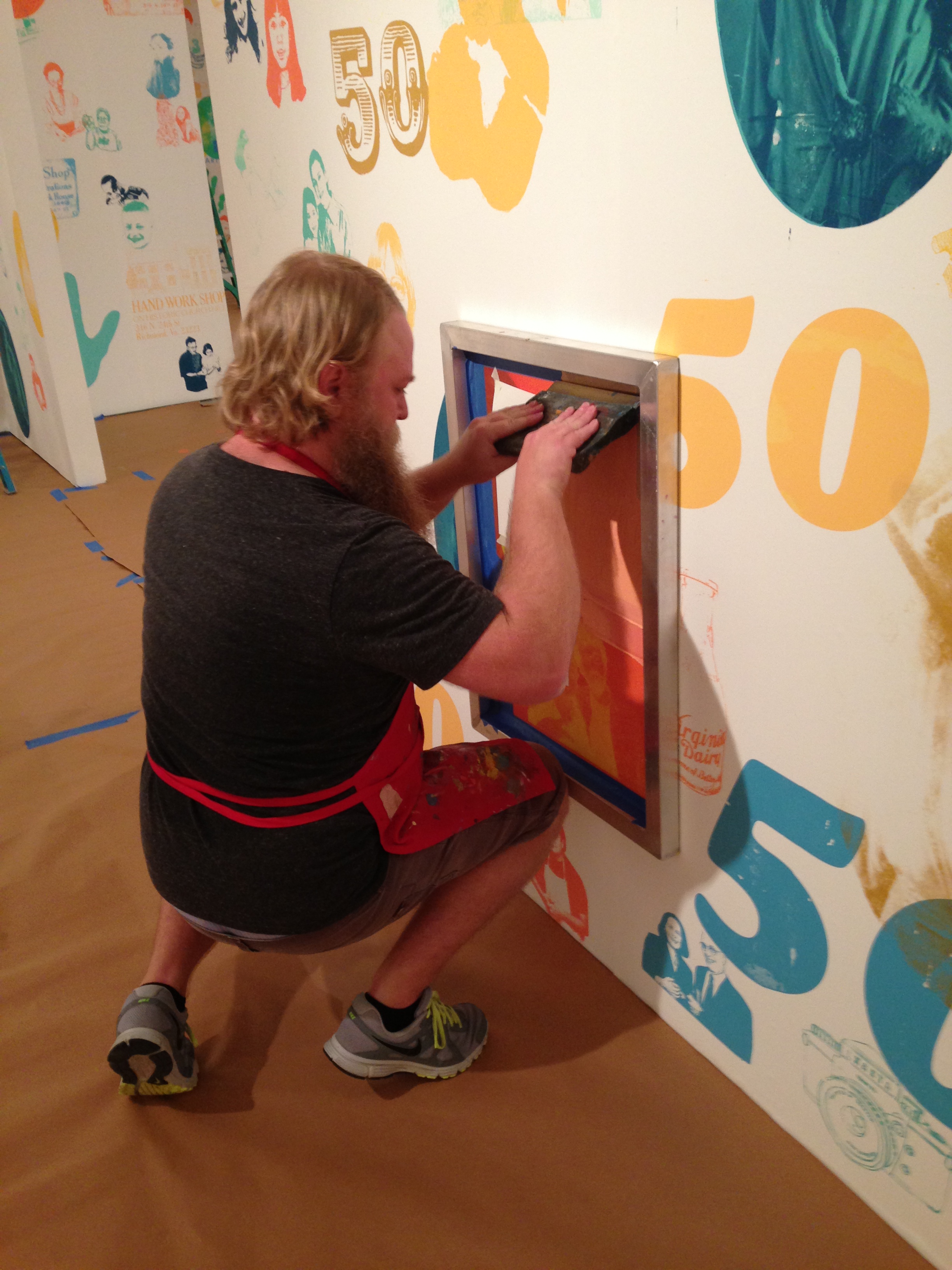 Bill Fick has been leading a big project at the Visual Arts Center of Richmond. Its a 2500 square foot installation that includes lots of vertical screen printing. See this link for more details: http://visarts.org/exhibitions/upcoming/reflections-exhibition/