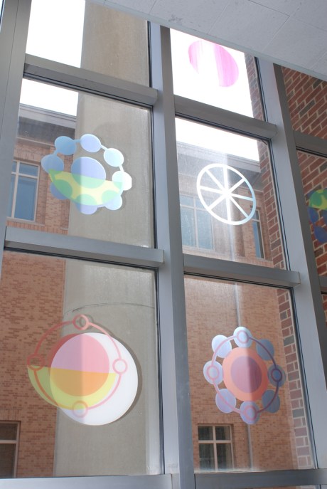 On February 1, 2011 Stefan Hoffmann visited Beth Grabowski’s screen printing class at the University of North Carolina, Chapel Hill. His visit included a window printing installation/workshop located in the entry area to the Hanes Art Building.